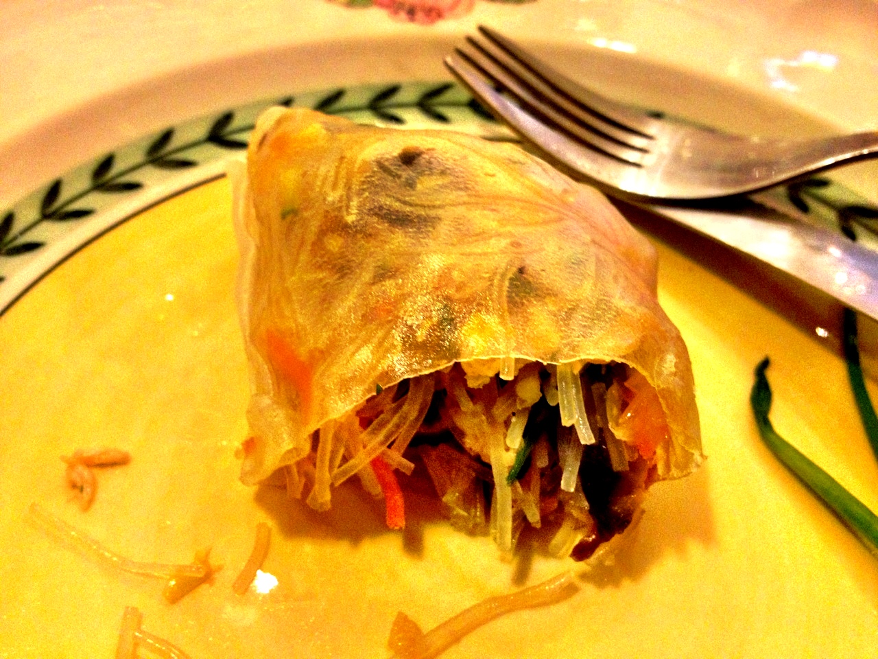 Andate al supermercato cinese, comprate dei vermicelli istantanei di soia, il modello più costoso (quelli con i laccetti commestibili, fatti sempre di vermicelli), dei funghi secchi costosi, possibilmente della razza shiitake (lentinula edodes), una confezione da 4 pezzi di cavolo cinese, una boccetta di salsa di soia, una bottiglia di vino di riso, un vasetto di salsa tuůöng ot sriracha, una vaschetta di menta fresca, una di coriandolo fresco, una di carta di riso banh tràng mỹ tho da 22,1 cm di lato e una di salsa di pesce vietnamita squid-brand (nuoc mam), poi andate al supermercato occidentale e comprate 229 gr. di carote, 215 gr di zucchine, un mazzetto di cipollotti Tropea freschi, un limone qualunque, 387 gr. di code di mazzancolle decongelate e sgusciate, una vaschetta di erba cipollina, una verza, una bottiglia d’olio di girasole, 4 uova biologiche, un po’ di olio e.v.o.d.o.p. in offerta, una confezione di dadi da brodo “Star” modello classico.